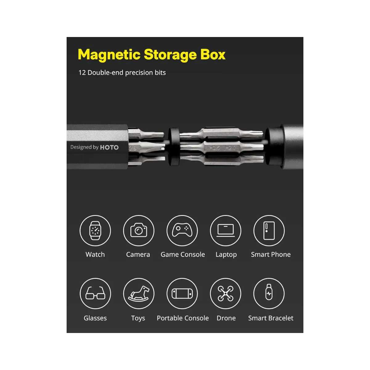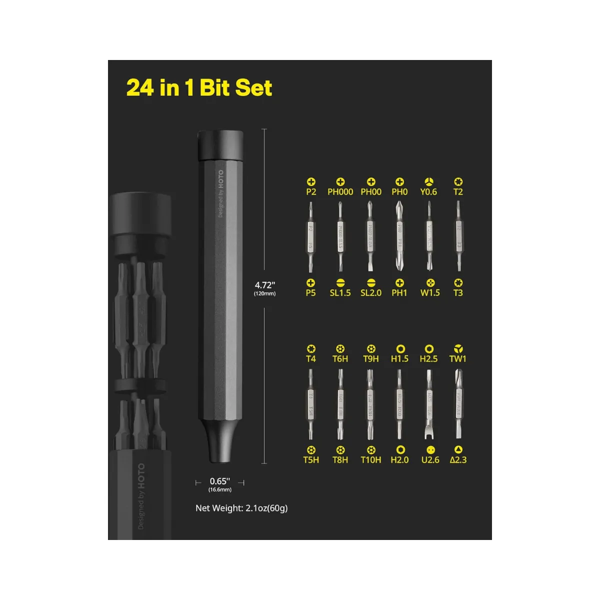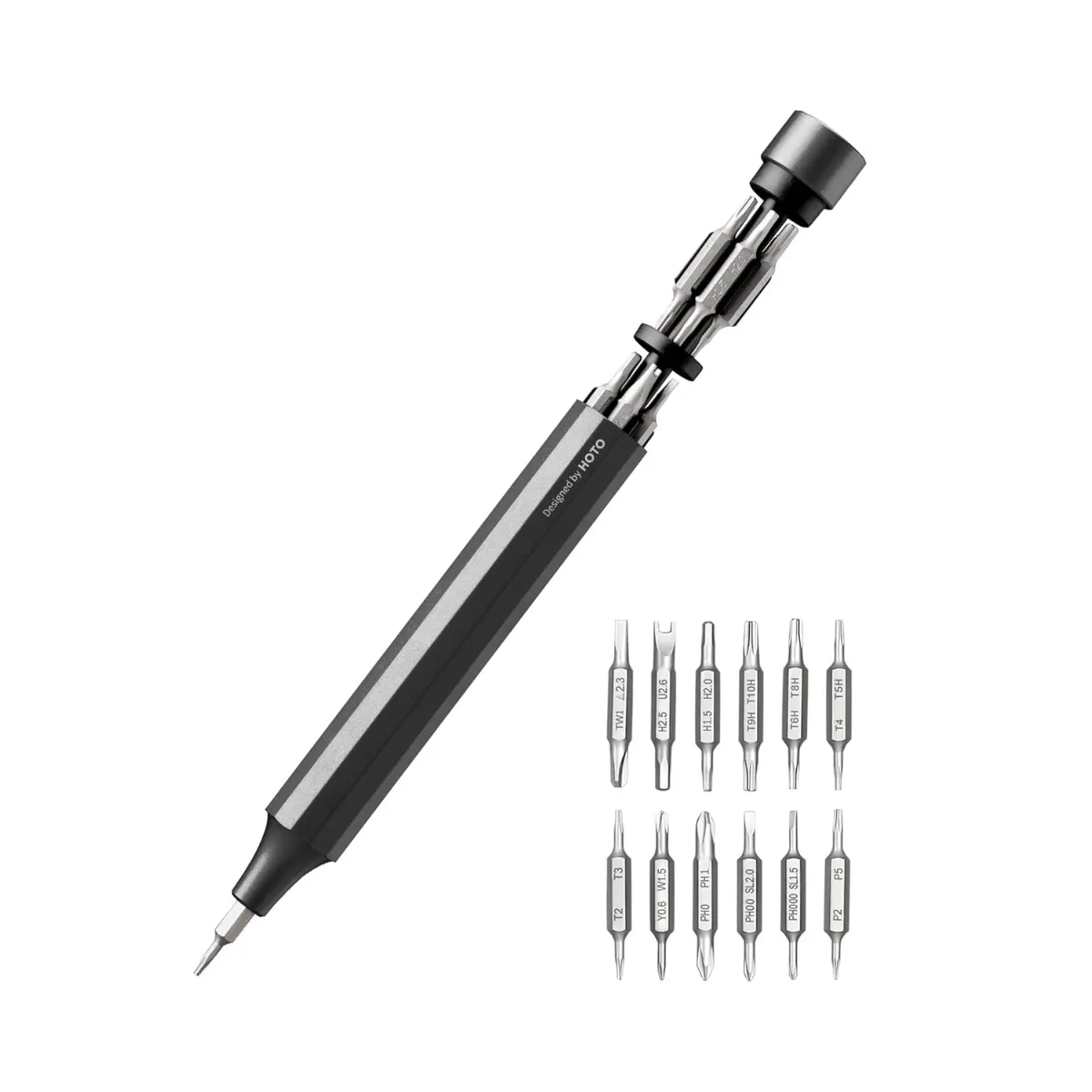 HOTO ชุดไขควงแมนนวลความแม่นยำสูง ขนาดเล็กแบบ 24 in 1 พร้อมแม่เหล็ก ไขควงทรงปากกาสำหรับพกพา (EDC) ใช้งานได้กับแว่นตา อุปกรณ์อิเล็กทรอนิกส์ นาฬิกา โทรศัพท์ โน้ตบุ๊ก กล้อง (สีเทา)